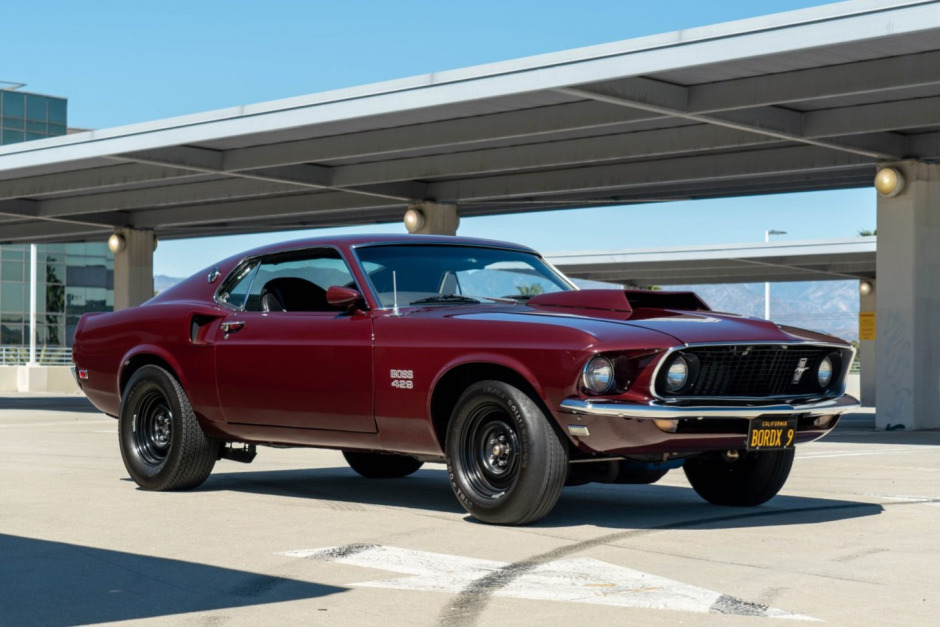 This 1969 Ford Mustang Sportsroof began life as a 302-powered automatic transmission car that was originally delivered to Litaker Ford of Catonsville, Missouri. It was refurbished and modified as a Boss 429 tribute under previous ownership before it was acquired by the seller in 2019. The car is finished in burgundy over black vinyl upholstery, and power comes from a Ford big-block V8 of unknown displacement paired with a four-speed Toploader manual transmission. Additional modifications include a fiberglass hood scoop, an Edelbrock RPM intake manifold, a Holley 800-cfm carburetor, a PerTronix billet distributor, a Griffin aluminum radiator, Bilstein shocks, Lakewood traction bars, Thrush stainless steel mufflers, a Hurst shifter, and a 9″ rear end with a 3.50:1 Traction-Lok differential.
