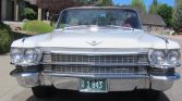This 1963 Cadillac Series 62 convertible was acquired by the family of the current owner approximately 41 years ago and is finished in white over red upholstery. Power comes from a replacement 390ci V8 paired with four-speed Hydramatic automatic transmission, and equipment includes a white convertible top, a Holley carburetor, power-assisted brakes and steering, electric windows, a power-adjustable front bench seat, and a push-button radio. Work since 2019 included flushing the transmission fluid along with replacement of the soft top, the carburetor, the exhaust system, the radiator and hoses, the water pump, and tune-up components. This Series 62 is offered on behalf of the current owner with removed factory parts, a spare wheel cover, partial service records, and a clean Idaho title.
