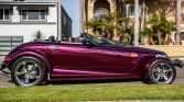 The car is finished in Prowler Purple Metallic Clear Coat (PH7) and features a black soft top, pinstripes extending from the side markers and on the hood,…
