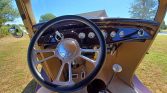 Polished 15″ Cragar SS wheels are wrapped in Mickey Thompson Sportsman S/R tires measuring 26×8″ up front and 28×10″ out back. The car is equipped with a Flaming River rack-and-pinion, and braking is handled by front discs and rear drums. The front suspension features tubular control arms, a four-link setup is found at the rear, and adjustable coilovers are fitted all around.