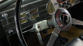 Body-colored 16″ wheels wear chrome covers and wide-whitewall tires. Dual enclosed side-mount spares are integrated with the front fenders. Suspension consists of control arms with coil springs and a sway bar up front as well as a solid rear axle with leaf springs. Stopping power is provided by hydraulic drums at all four corners.