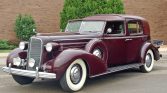 The Fleetwood body is mounted on a 138″ wheelbase and features a detachable soft top over the driver’s compartment. The car was refinished in its current burgundy paint with a matching roof cover during a refurbishment that was reportedly carried out 20 years ago. Exterior details include rear coach doors, a body-colored luggage rack, a Flying Lady hood ornament, driving lights mounted over the front bumper, running boards, and dual sideview mirrors.
