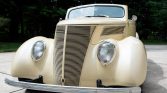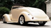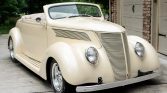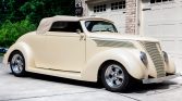 This 1937-style Ford convertible street rod was built using a Gibbon Fiberglass Reproductions body on a custom chassis, and it was acquired by the current owner out of South Dakota in 2018. Finished in white over beige leatherette upholstery with a tan soft top, the car is powered by a 350ci V8 Chevrolet crate engine for which a replacement fuel pump was installed in preparation for the sale. Additional equipment includes a three-speed automatic transmission, an Edelbrock…