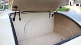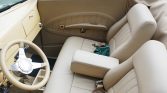 The car’s fiberglass body, doors, and trunk lid are complemented by a steel hood, grille, running boards, and fenders, all of which are finished in Vanilla Pearl paint with a tan folding top and an interior-matching boot cover. Additional features include a Briz ribbed-alloy front bumper, dual side mirrors, and power- and fuel-cutoff switches located beneath the edge of the body at the rear.