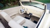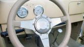 A leather-wrapped Lecarra steering wheel sits atop a tilting column and fronts a body-color steel dashboard that houses Dolphin instrumentation consisting of a 140-mph speedometer and a four-in-one combination gauge. The six-digit mechanical odometer shows 7k miles.