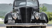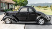 This 1937 Ford coupe was refurbished and modified under previous ownership before it was acquired by the seller in 2017. The car is finished in black over burgundy cloth upholstery, and power comes from a 327ci V8 paired with a three-speed automatic transmission. Features include chrome bumpers, dual taillights, turn signals, front disc brakes, 14″ and 15″ aluminum wheels, power-assisted steering, an Edelbrock intake manifold, dual-exit exhaust, a tilt steering column, VDO instrumentation, and a JVC cassette stereo.