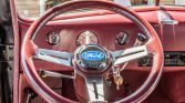 The 14″ front and 15″ rear aluminum wheels feature three-eared knock-off hubs and are mounted with Sigma Shadow tires. The car is equipped with power-assisted steering, a straight front axle is fitted, and braking is handled by front discs and rear drums.