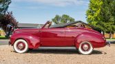 This 1939 Mercury Eight convertible is finished in maroon over tan vinyl and powered by a 239ci flathead V8 paired with a three-speed manual transmission with electric overdrive. The car was reportedly refurbished under prior ownership and was acquired by the seller in 2019. Details include a tan Haartz cloth top with a glass rear window, a two-piece windshield, running boards, 15″ body-colored steel wheels, and a heater.
