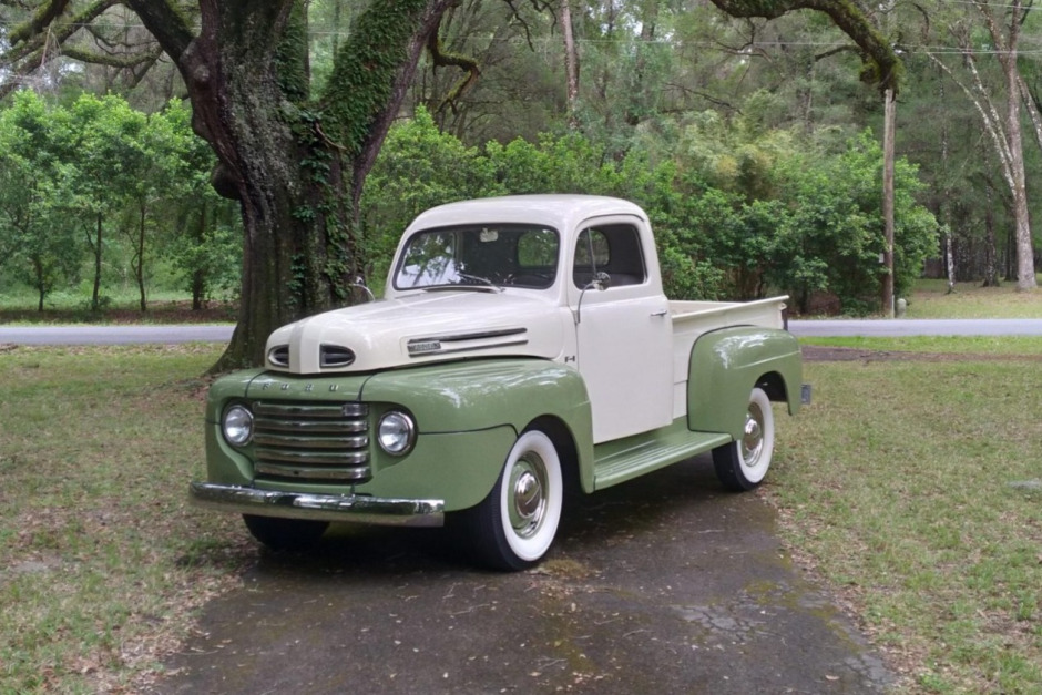 This 1950 Ford F-1 pickup was acquired by the seller in 2014 following a refurbishment that was completed during previous ownership. The truck has been refinished in green and white, and power is provided by a 239ci flathead V8 paired with a three-speed manual transmission.