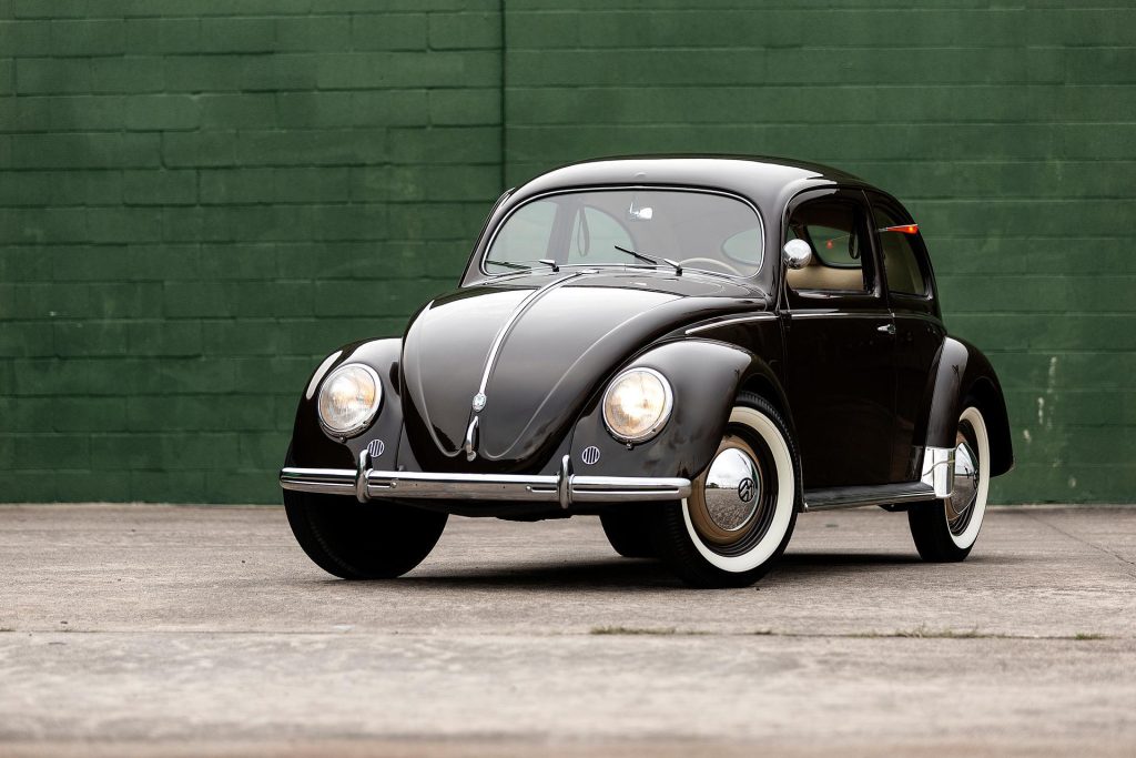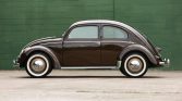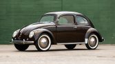 This 1951 Volkswagen Beetle is a Deluxe sedan that utilizes a split-window body finished in brown over a cream and brown interior and is powered by a 1.1-liter flat-four paired with a four-speed manual transaxle. Features include color-matched 15″ steel wheels, hydraulic drums brakes, chrome bumpers and trim, running boards, wind-up windows, fresh air vents, Basta pillar-mounted semaphore turn indicators, and a Mauthe analog clock. The car is said to have been imported to the US and refurbished during previous ownership in 2009.