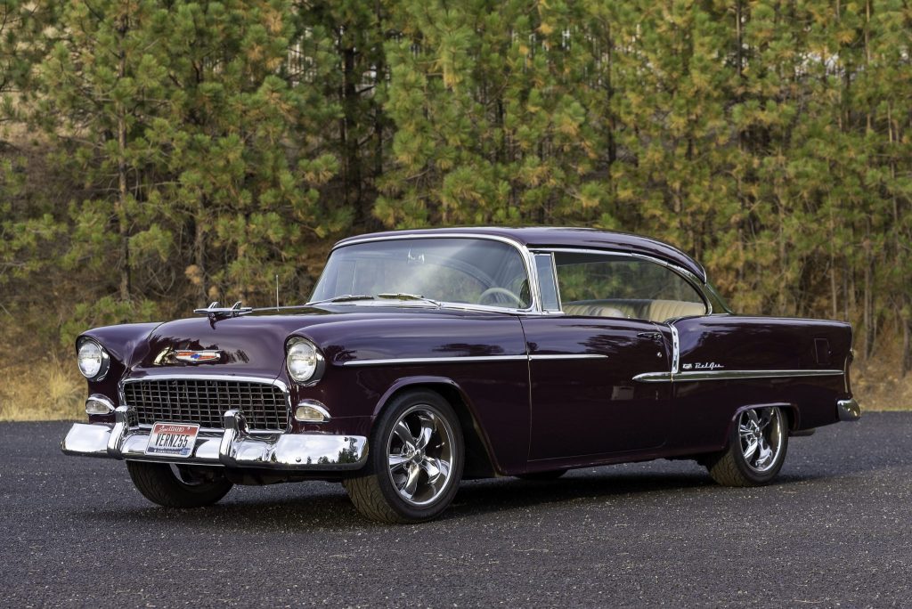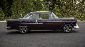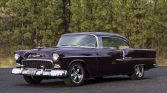This 1955 Chevrolet Bel Air sport coupe was acquired by the seller’s late husband in 2002 and subsequently was refurbished with work that included installing a 350ci V8 paired with a Turbo 350 three-speed automatic transmission, refinishing the exterior in purple, and reupholstering the interior in gray leather. Other equipment includes a lowered suspension, Foose 17″ wheels, Flowmaster dual exhaust, four-wheel disc brakes, air conditioning, and a cassette stereo.