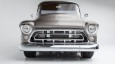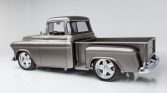 This 1955 GMC 100 pickup is a refurbished and modified example that was acquired by the current owner in October 2020. The truck is powered by a 502ci V8 with electronic fuel injection paired with a Hughes-built 700R4 four-speed automatic transmission and has been refinished in Magnum Moca Metallic over custom saddle brown leather. Features include a tailgate and front sheet metal from a 1957 Chevrolet, chrome 20″ Foose wheels, four-wheel power disc brakes, a 4-link rear…