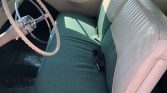 Steel 15″ wheels wear chrome covers and are mounted with whitewall tires. A full-size spare tire is mounted in the trunk, and the car is equipped with power steering and power-assisted drum brakes.