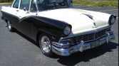 Originally finished in Raven Black, the car reportedly was refinished in its current shade of black and white in 2006. Trim includes bright side moldings, window surrounds, mirrors, and bumpers as well as Fairlane, Club Sedan, and Ford badging.