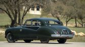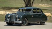 This 1956 Jaguar MK VII M is a right-hand-drive example that was reportedly first sold in Australia and later spent time in Europe, where the vehicle participated in the Mille Miglia rally in 2011. The car is finished in British Racing Green over brown upholstery and powered by a 3.4-liter inline-six mated to a replacement four-speed manual transmission equipped with electronic overdrive. Features include a side-hinged hood with a leather strap, a windshield visor, a sunroof, power…