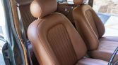 Cabin finishes include brown upholstery on the seats aLompanied by matching door panels and wood trim. A period radio is retained in the center stack, and a Sony CD stereo has been mounted under the dashboard. Further additions included the installation of an ignition kill switch, a Brantz rally meter, and a fire extinguisher mounted alongside the front passenger seat.