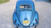 This 1956 Volkswagen Beetle is finished in Eismeer Blue Metallic over a two-tone gray interior and powered by a 2,387cc flat-four paired with a four-speed manual transmission. The car was acquired by the seller in 2007 and subsequently refurbished with work including a body-off repaint, refreshing the interior, and installation of a custom sound system with a Pioneer Bluetooth stereo, Porsche-style Fuchs wheels, a Porsche fan conversion, four-wheel disc brakes, a dual-outlet exhaust, and ISP instrumentation. Equipment consists of chrome-finished bumpers and trim, running boards, and halogen headlamps.