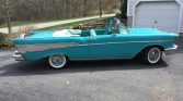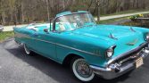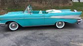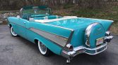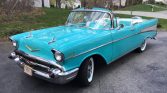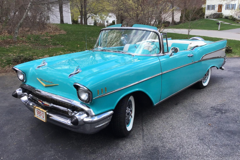 This 1957 Chevrolet Bel Air convertible was assembled in Norwood, Ohio, and was refurbished prior to the seller’s acquisition in 2000. The car is finished in turquoise over a two-tone turquoise and ivory interior and is powered by a 283ci V8 paired with a two-speed Powerglide automatic transmission. Additional equipment includes a white convertible top, Bel Air trim, power-assisted brakes, power steering, a Continental spare tire, a heater, and an AM radio. Service in October 2019 included installing repairing the brake master cylinder and bleeding the system. This Bel Air is now offered with an owner’s manual, convertible top manual, and a clean Massachusetts title.