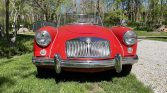 This 1957 MGA 1500 roadster was purchased by the seller’s father in 2001 and was acquired by the seller in 2008. Finished in red over black vinyl, it is powered by a 1.5-liter inline-four paired with a four-speed manual transmission. Equipment includes a black convertible top, chrome bumpers with overriders, and 15″ Minilite-style wheels. Maintenance during current ownership is said to have included routine oil changes and replacement of fuel system and rear brake components.