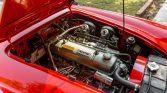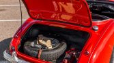 The 15″ wire wheels feature two-eared knock-off spinners and are mounted with 165 width Michelin tires, and a matching spare is located in the trunk. Braking is handled by drums at all four corners. Service performed by British Automotive Repair of Scottsdale, Arizona, included replacement of rear wheel bearings, hub seals, and steering box seals.