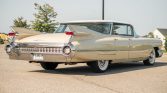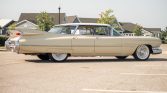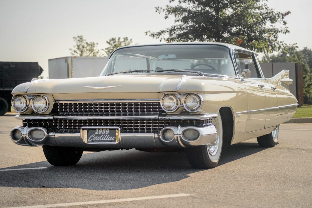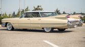 This 1959 Cadillac Series 62 is a four-window ‘flat top’ sedan that was acquired by the seller out of New York in 2016 from its reported second owner. Power is provided by a 390ci V8 paired with a four-speed automatic transmission, and the car is finished in Beaumont Beige with a white roof over Fawn upholstery. Equipment includes power-assisted brakes and steering as well as a six-way electrically adjustable front seat, power windows, and a Delco Am…