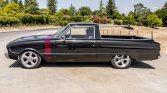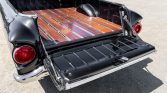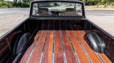 This 1960 Ford Falcon Ranchero is powered by a 302ci V8 with electronic fuel injection paired with a four-speed automatic transmission and has been refinished in dark metallic gray over custom gray leather. Features include chrome 17″ Rev wheels, four-wheel power disc brakes, Mustang II front suspension, power steering, air conditioning, power aLessories, black walnut wood bed inserts, and custom behind-seat storage.