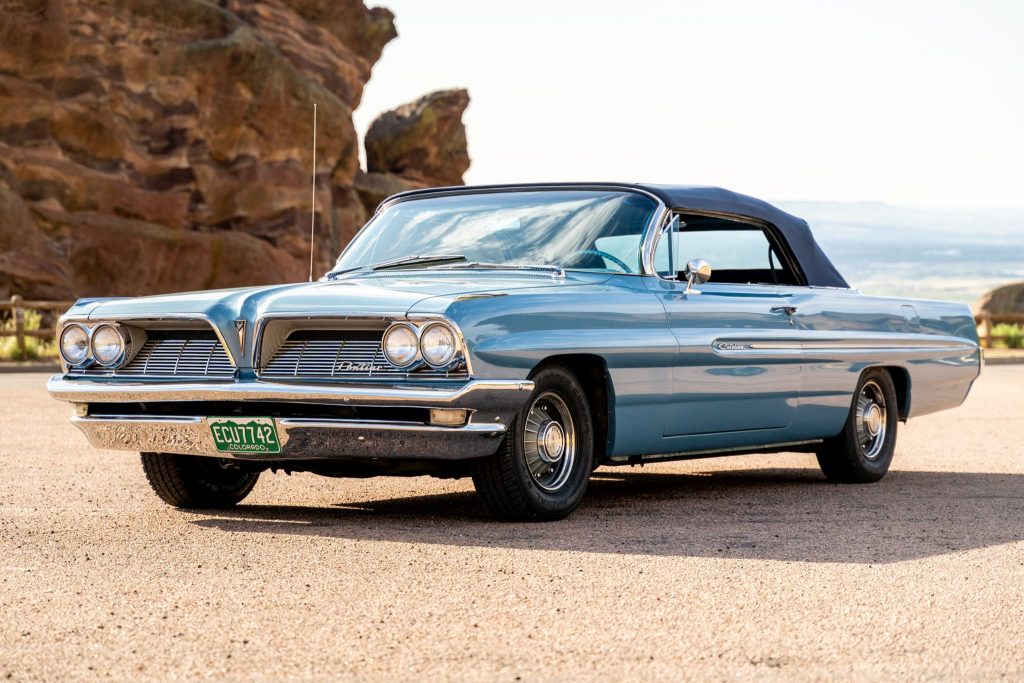 This 1961 Pontiac Catalina convertible was purchased by the seller in January 1997 and has since undergone a refurbishment featuring the installation of a 389ci V8 engine with Tri-Power induction through three two-barrel Rochester carburetors. Power is sent to the rear wheels through a replacement four-speed automatic transmission, and additional modifications include a repaint in light blue, 14″ eight-lug wheels with finned drum brakes, updates to the blue interior, and more as described below. Work conducted in…