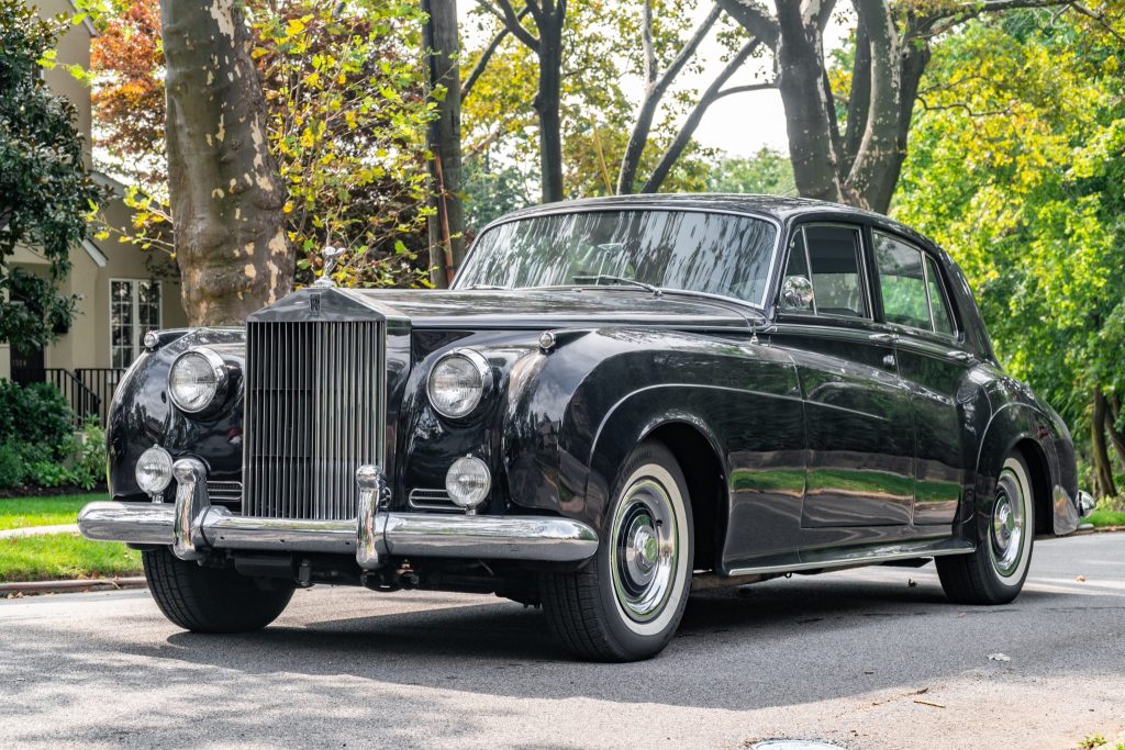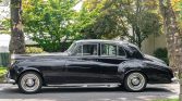 This 1961 Rolls-Royce Silver Cloud II is a left-hand-drive four-door sedan that was delivered new to California and acquired by the current owner approximately six years ago. Finished in dark blue over gray leather upholstery, the car is powered by a 6.2-liter V8 paired with a Hydra-Matic four-speed automatic transmission. Additional equipment includes a push-button radio, rear seat trays, and steel wheels with polished and painted covers. Work during current ownership has included an overhaul of the brakes along with replacement of the headliner and carpets.
