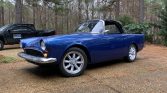 This 1962 Sunbeam Alpine is a Series II example finished in metallic blue over tan and powered by a 1,592cc inline-four paired with a four-speed manual transmission. The car was refurbished under previous ownership. During the refurbishment, the car was repainted, a replacement interior was installed, the engine was overhauled, and the removable factory hardtop was refinished in black. Features include aftermarket alloy wheels, a Weber downdraft carburetor, chrome bumpers, and a stainless-steel exhaust system.