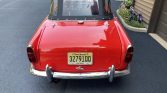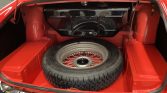 Painted 15″ wire-wheels are secured via two-eared knockoffs and are mounted with 165/80 Thunderer Mach I tires showing 2021 date codes. Braking is handled by front discs and rear drums.