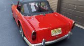The car was repainted red in 2010 under previous ownership per the seller. Details include a black soft top, short-style passenger-side hood bubble, chrome bumpers with overriders, and fender-mounted chrome mirrors.