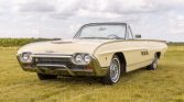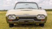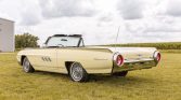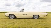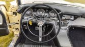 This 1963 Ford Thunderbird is finished in Tucson Yellow over a black interior and is powered by a 390ci V8 featuring triple carburetors. The car left the factory as a 76A Convertible model and was reportedly refurbished in the 1980s in the style of a 76B Sports Roadster. Shifting is through a Cruise-O-Matic three-speed automatic transmission, and additional equipment includes a power-operated black soft top, a fiberglass tonneau cover, air conditioning, a push-button radio, brushed aluminum and chrome interior trim, front bucket seats, and 14″ wire wheels. Service completed in 2020 is said to have included replacement of the battery and exhaust manifold gaskets as well as oil, filter, and coolant changes.