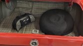 Polished 14” wheels are mounted with 195/75 Hankook Optima H724 white-stripe tires, and a full-size spare is located in the trunk. Stopping power is provided by power-assisted drum brakes at each corner. The front shocks were replaced in 2019.
