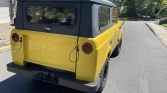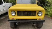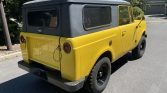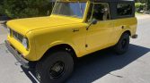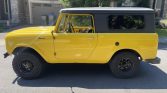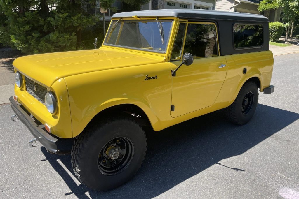 This 1964 International Harvester Scout 80 was refinished in yellow and black over a matching two-tone interior under previous ownership, reportedly in 2005. Power is from a carbureted 152ci inline-four paired with a three-speed manual gearbox and a two-speed transfer case. Additional equipment includes a suspension lift, black steel wheels with 31″ tires, a diamond-plate rear bumper, and a removable hardtop. The carburetor is said to have been rebuilt and the braking system refreshed along with replacement of the clutch, ignition components, and thermostat.