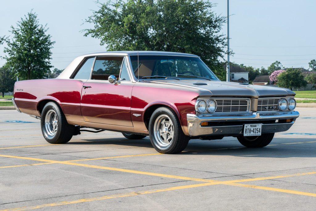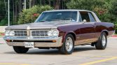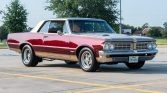 This 1964 Pontiac GTO hardtop was overhauled and rebuilt between 2011 and 2013 by Funkhouser Race Cars in Ramona, California. Highlighting the modifications was the installation of a 6.2-liter LS3 linked to a Tremec five-speed manual and a Strange Engineering Dana 60 rear end with 35-spline chromoly axles, a gear-style locking differential, and 3.55:1 gearing. The car rides on CPP’s ProTouring suspension kit with four-wheel disc brakes and American Racing Salt Flat Special aluminum wheels, and inside there is custom leather upholstery, wool carpeting, Vintage Air climate control, a retro-style head unit with Bluetooth capability, and a tilt steering wheel.