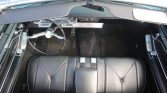 Delivered from the factory in Hampton Blue, the car was refinished in its current blue under previous ownership. The white convertible top was reportedly replaced in 2016 and stows beneath a blue boot cover. Exterior details include cornering lamps, rear fender skirts, chrome bumpers, and stacked quad headlights. Dents are present in the rear bumper and right-rear quarter panel.