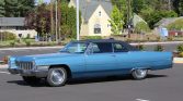 The 15″ wheels feature Cadillac-branded covers and are wrapped in 235/75 Toyo Eclipse whitewall tires. Braking is provided by power-assisted drums.