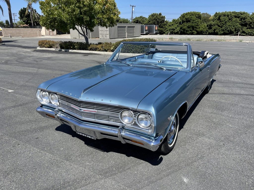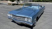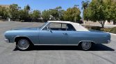 This 1965 Chevrolet Chevelle Malibu convertible is finished in blue over a matching interior and is powered by a 283ci V8 paired with a three-speed automatic transmission. Features include a white soft top, a push-button radio, a dual exhaust system, power steering and braking, and 14″ steel wheels with covers. The car has reportedly spent most of its life in California and was refurbished before being acquired by the seller around two years ago.