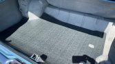 The bench seats are upholstered in blue vinyl, and the cabin features a matching dash, carpeting, and door panels. Interior features include a push-button radio and a lockable glovebox.