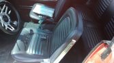 The cabin features front bucket seats and a rear bench that were reupholstered in black vinyl under previous ownership, at which time the carpets and headliner are said to have been replaced. Amenities include polished trim, front and rear crank windows, a GT steering wheel, a heater, and an aftermarket Phase Linear CD stereo. The heating coil is said to have been replaced under previous ownership.