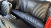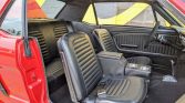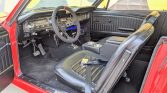 This 1965 Ford Mustang coupe has been refinished in red over a refreshed black interior and is powered by a fuel-injected 347ci V8 is paired with a four-speed automatic transmission. Equipment includes an E303 camshaft, GT40 cylinder heads, an 8″ rear axle with a 3.55:1 gear ratio, 18″ wheels, four-wheel disc brakes, an aftermarket sound system, an armrest console, and black exterior trim.