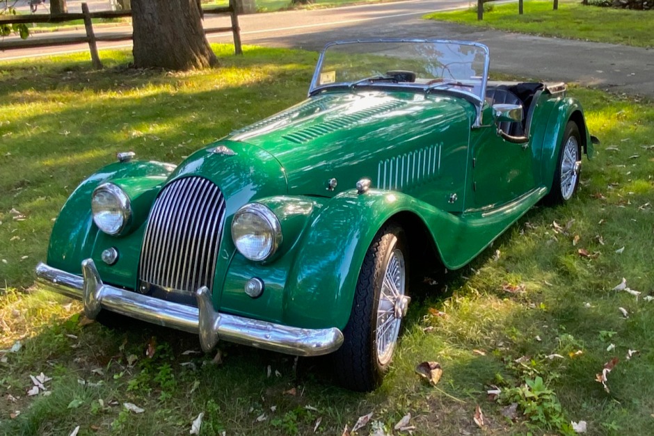 This 1965 Morgan Plus 4 is a green-over-black convertible that is powered by a 2,138cc inline-four mated to a four-speed manual transmission. Equipment includes a tonneau cover, dual carburetors, a woodgrain dashboard, and 15″ knock-off wire wheels. The car was refurbished in the early 2000s, and it was acquired by the seller’s brother in 2012 and passed on to the seller in 2021. Work performed since 2012 included replacement of the head gasket, spark plugs, wheel bearings,…