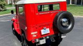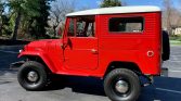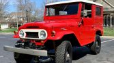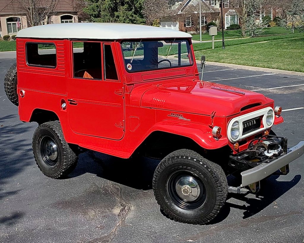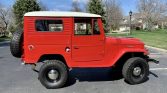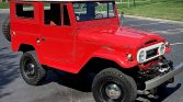 This 1965 Toyota Land Cruiser FJ40 was acquired in 2012 by the seller, who subsequently completed an eight-year refurbishment. The body was removed from the frame and refinished in Seminole Red with a white Shell Ivory roof, the chassis was repainted in black, the seats were reupholstered with coral-colored vinyl, and suspension, exhaust, and braking components were replaced. Power is provided by a replacement 3.9-liter inline-six paired with a three-speed manual transmission and a dual-range transfer case.…