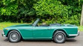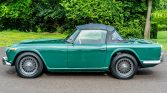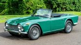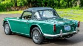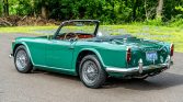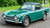 This 1965 Triumph TR4A was acquired as a project by the seller in 1995 and subsequently underwent a body-off refurbishment the following year. Work included a repaint, repairs to the frame and body, and refreshment of the electrical system, suspension, and brakes. Finished in green over black leather, the car is powered by a numbers-matching 2,138cc inline-four linked with a four-speed manual transmission. Equipment includes a black soft top, luggage rack, chrome knock-off wire wheels, a Moto-Lita…
