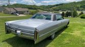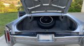 Factory 15″ steel wheels wear polished hubcaps with Cadillac center emblems and whitewall tires. A full-size spare is located in the trunk.