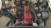 Silver-painted 14” wire wheels are secured with two-eared knockoffs and mounted with Michelin XZX tires. Stopping power is provided by discs up front and drums in the rear.