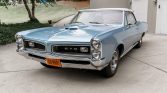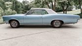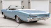 The 389ci V8 was factory rated at 335 horsepower and was rebuilt during the refurbishment in 2011. Triple two-barrel carburetors were installed at that time, and the car is equipped with a dual exhaust system. The removed carburetor and intake manifold are included in the sale.