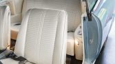 Finished from the factory in Fontaine Blue, the body was removed from the frame and repainted during the refurbishment. A replacement white soft top has been fitted, and additional exterior features include stacked headlamps, hood scoops, and chrome bumpers.