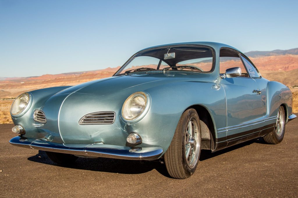 This 1966 Volkswagen Karmann Ghia is a 2+2 coupe that underwent a cosmetic and mechanical refurbishment under prior ownership before being acquired by the seller in June 2021. The car is finished in light blue over gray upholstery and is powered by an air-cooled 2.0-liter flat-four mated to a four-speed manual transaxle. Equipment includes front disc brakes, 15” alloy wheels, chrome bumpers and grilles, woven floor mats, and dual Weber carburetors.