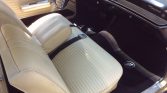 The interior features parchment vinyl seats with pleated inserts. Additional equipment includes a black dash, carpet, rubber floor mats, and push-button AM radio.